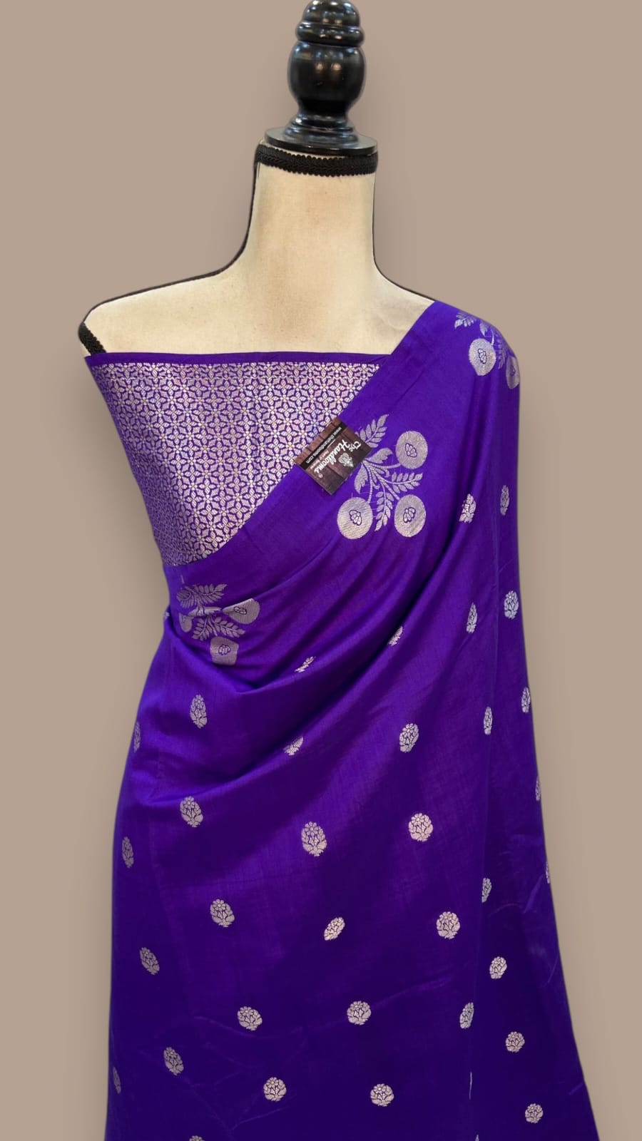 Elegant Banarasi Dyble Raw Mango Soft Silk Saree with allover zari buti, rich weaving border, zari pallu, and matching brocade blouse. Perfect for weddings, parties, and festive occasions
