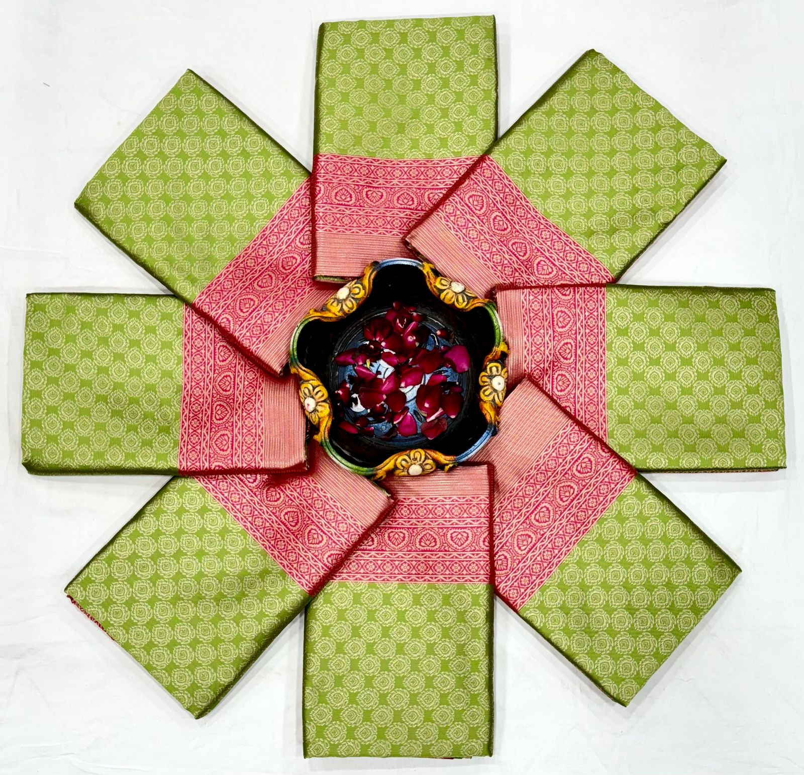 - Bold and beautiful, this Kanchipuram KING & QUEEN ATTRACTIVE silk Green color brocade saree is all about impactful presence.