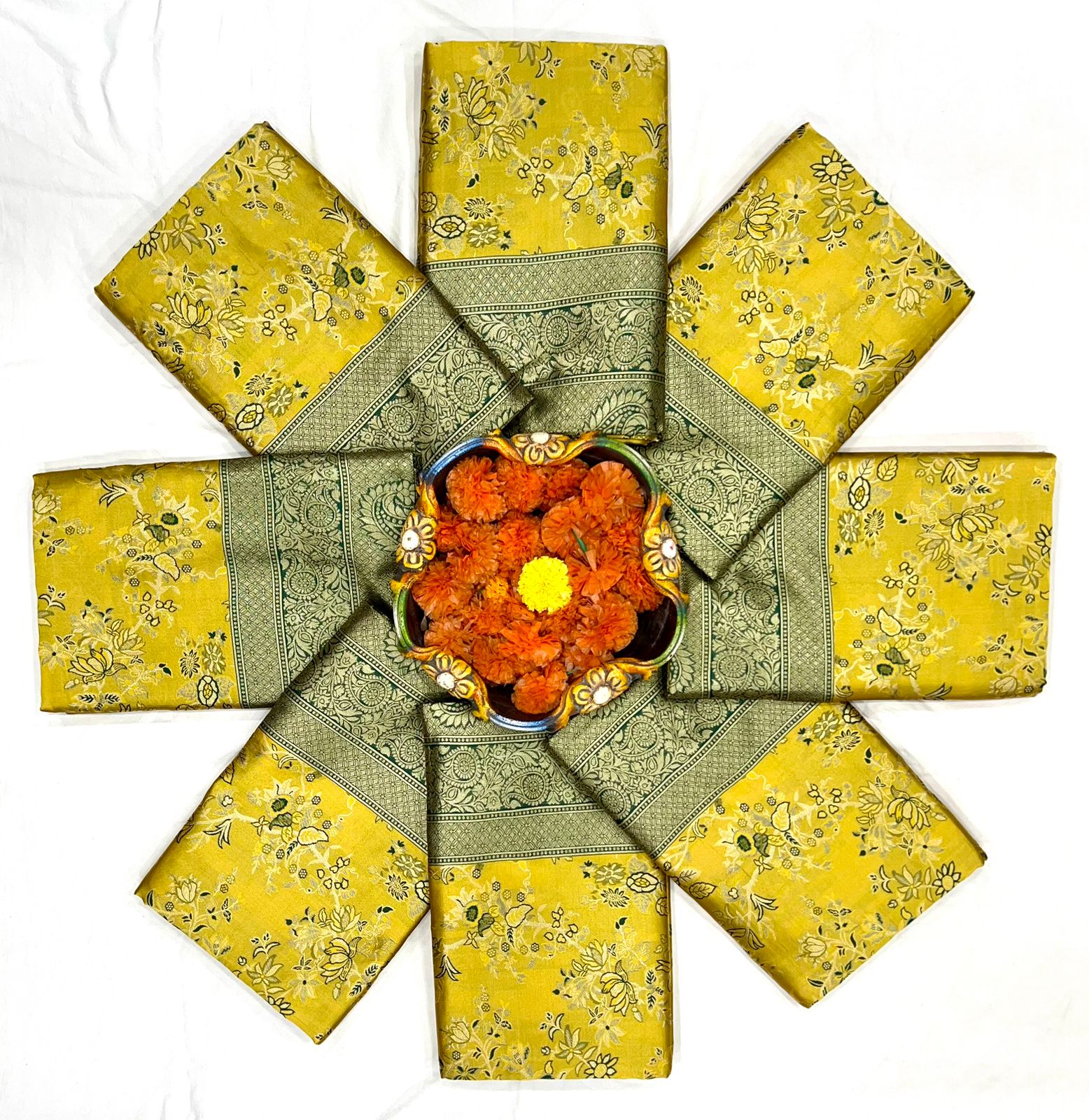 •  The saree features a luxurious drape that enhances its overall elegance, while the brown border provides a sophisticated finish to the garment. The silk fabric offers a natural sheen and fall that makes it comfortable to wear throughout the day. This versatile saree can be styled for various occasions, from traditional ceremonies to evening gatherings.