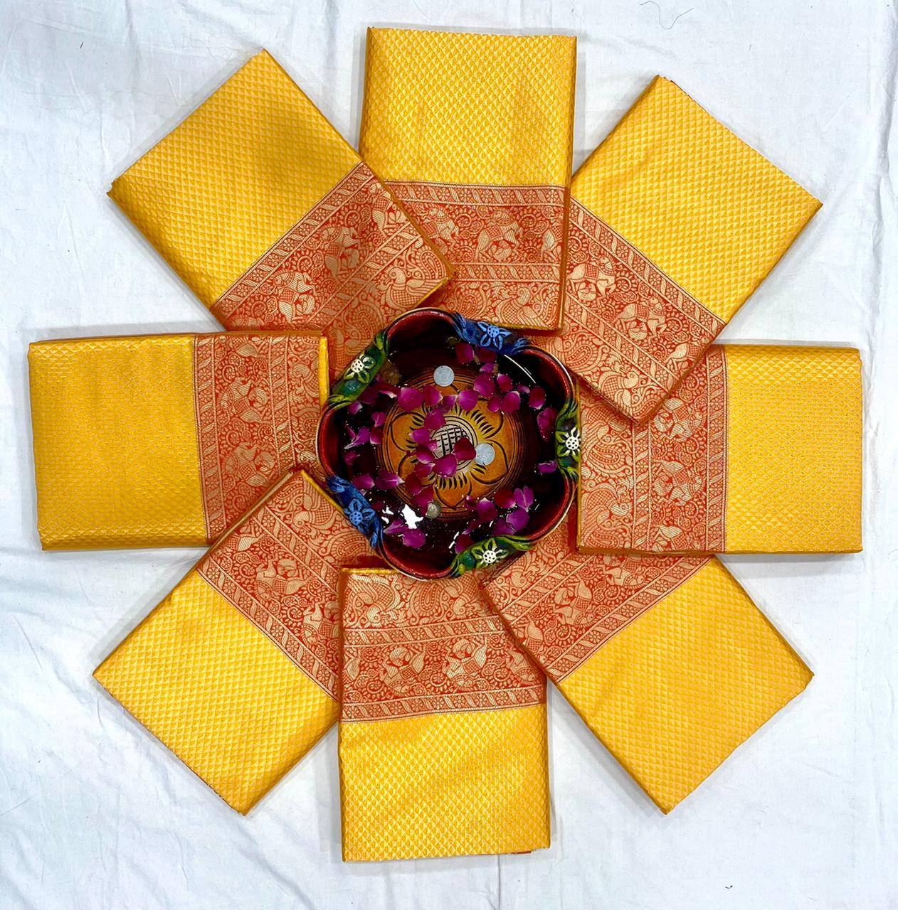 - The length of each saree: 6.3 meters(Approx) including 0.8 meter(Approx) blouse piece. Work : Gold Zari Work, Style : Allover Jacquard Gold Zari Work, Comfotable For All Day Wear.