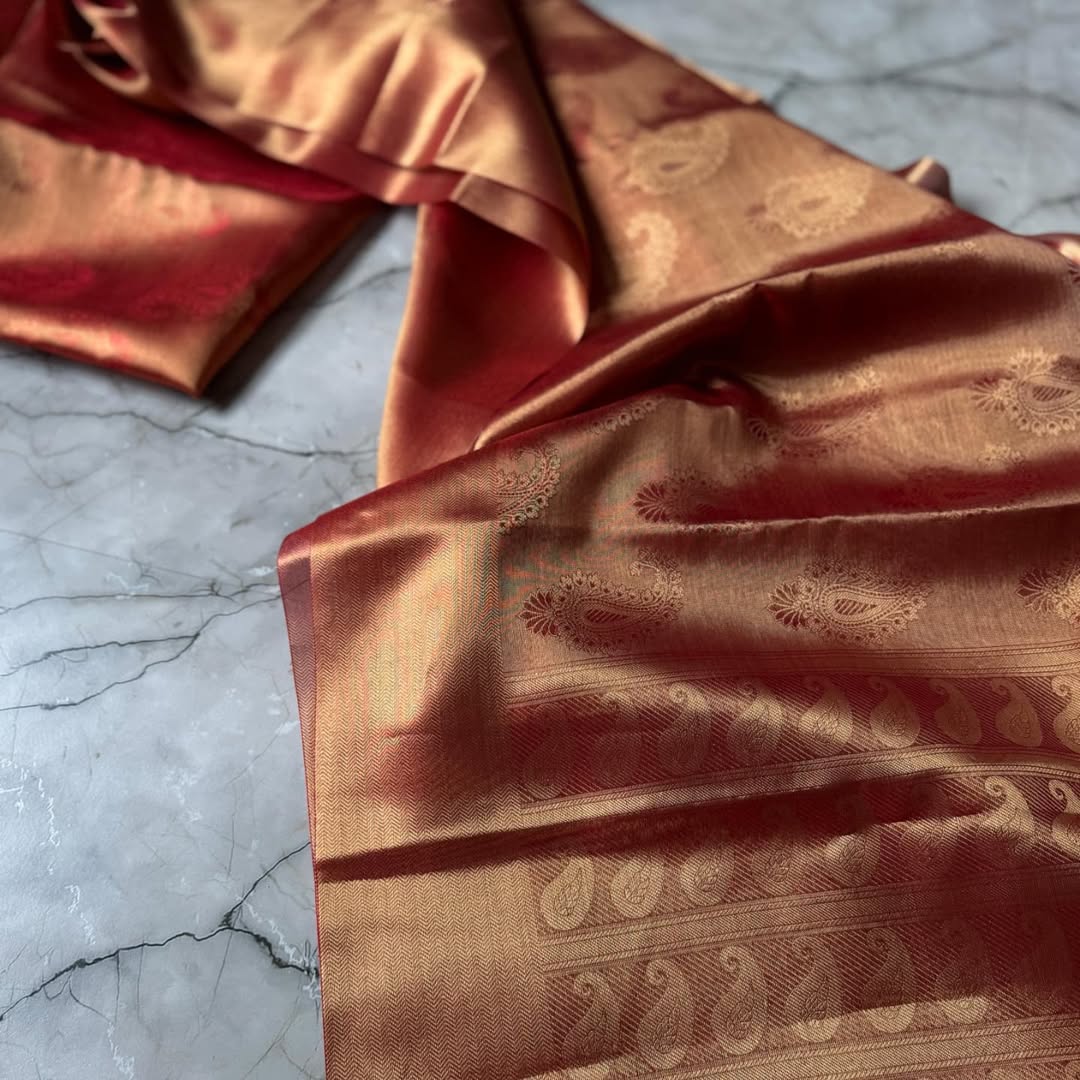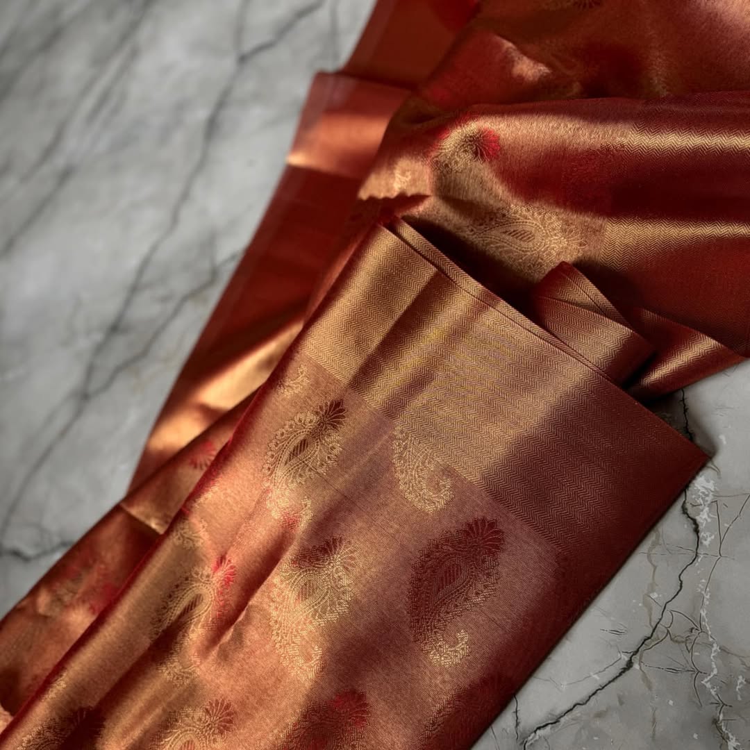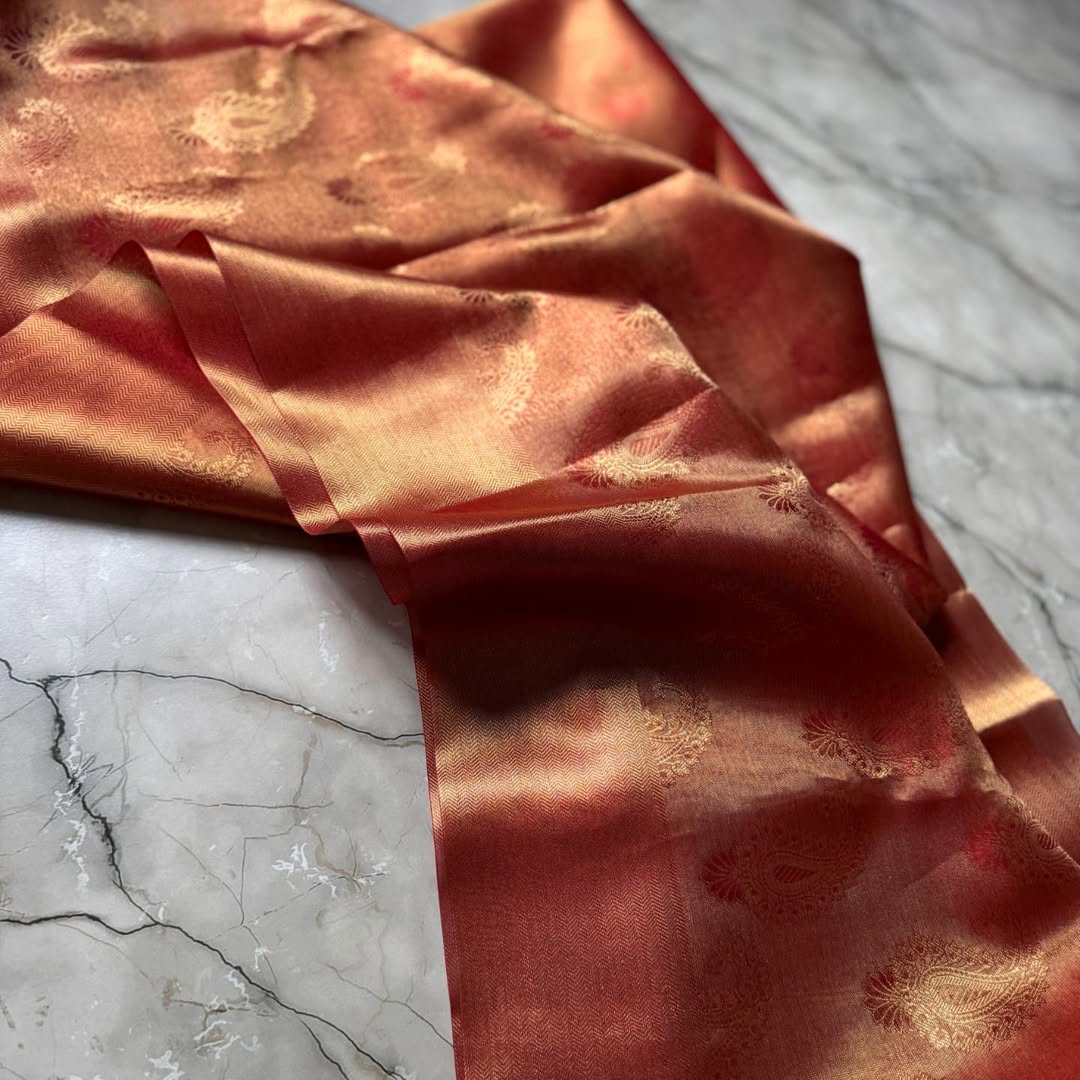 Premium Banarasi tissue soft silk saree with rich zari weaving all over, elegant border, and brocade blouse piece. Perfect for weddings, parties, and festive occasions.