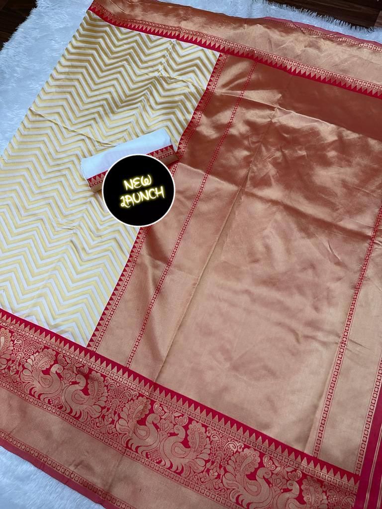 • Material:- Soft Lichi Silk || Color:- White & Red