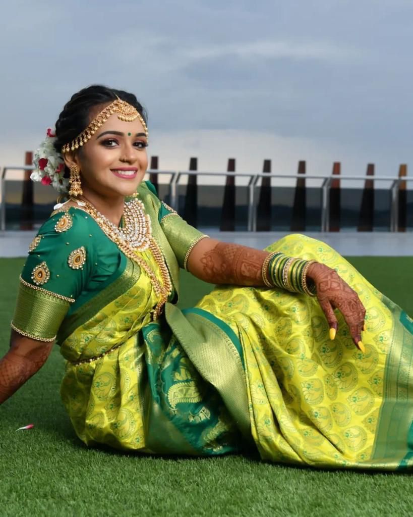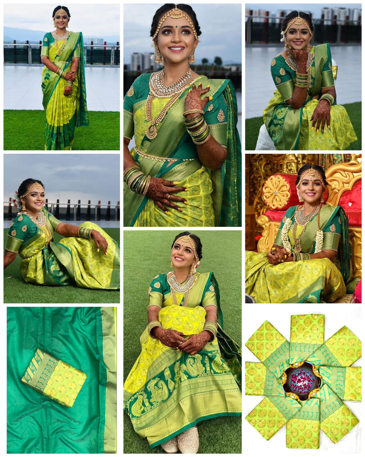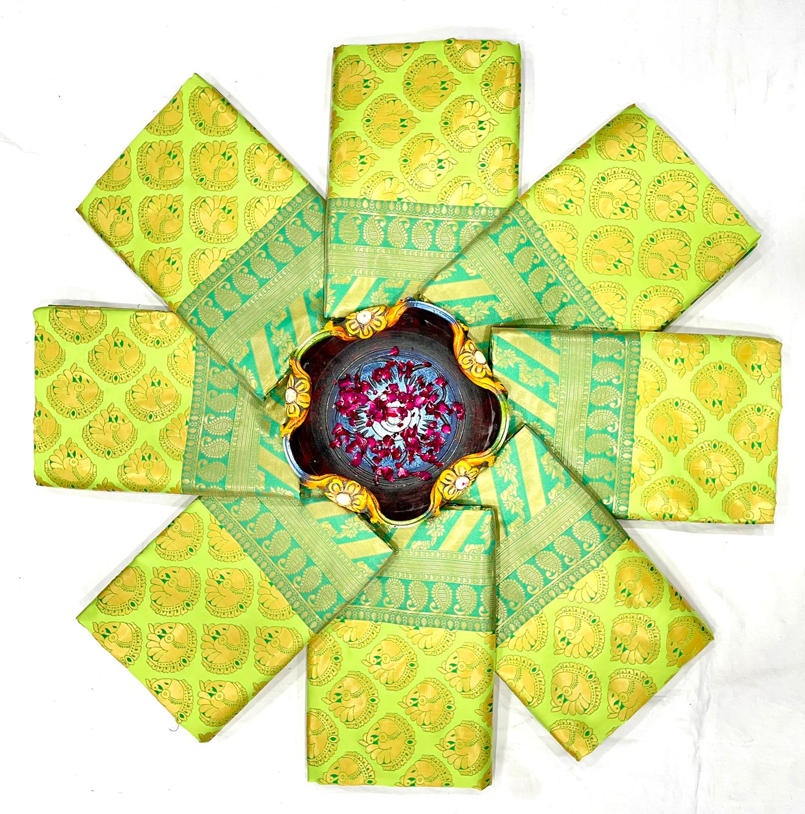 • Material:- Soft Lichi Silk || Color:- Lime Yellow & Green